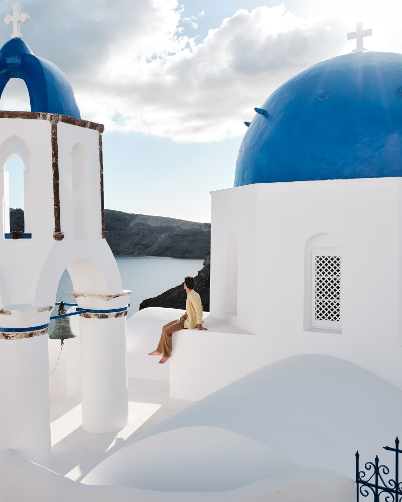 Nestling beautifully on Oia’s western edge, the quaint neighborhood of Tholos in Santorini is one of the most scenic parts of the village; a quarter overflowing with authentic Cycladic charm; Think of a charming cluster of residences perched high on the cliff of the breathtaking caldera featuring smooth winding interconnecting alleys, whitewashed dwellings, blue-domed chapels popping up now and then, fuchsia cascades of bougainvilleas and the most gorgeous views of the sea and the volcano!